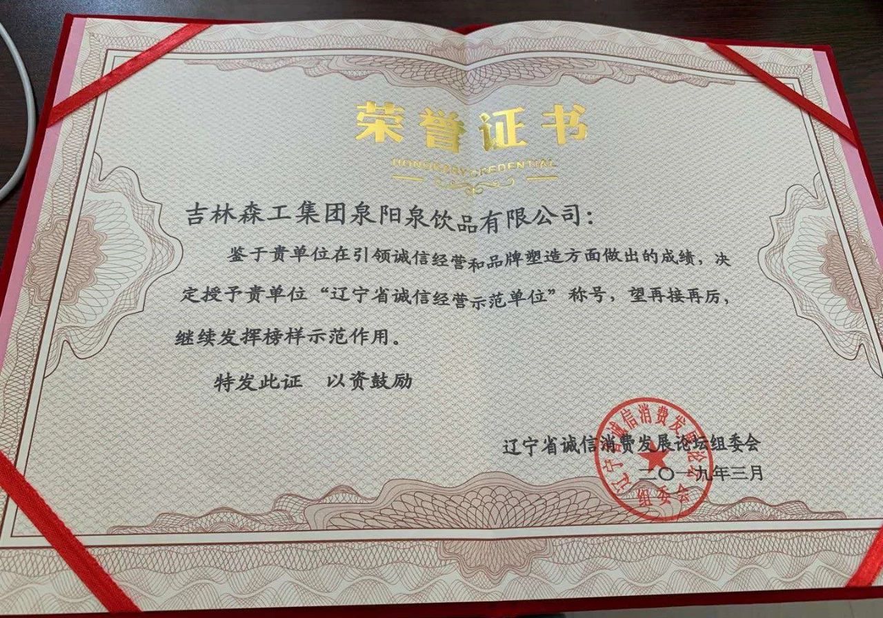 ? ? ? ? ?為了更好地貫徹落實(shí)習(xí)近平總書記在民營(yíng)企業(yè)家座談會(huì)上的講話精神,以“保質(zhì)保量、誠(chéng)信經(jīng)營(yíng)、綠色消費(fèi)”為主題,樹立一批“講誠(chéng)信,負(fù)責(zé)任,守法紀(jì)”的先進(jìn)典型。為企業(yè)與企業(yè)之間、企業(yè)與單位之間、企業(yè)與消費(fèi)者之間搭建了一個(gè)很好的交流、合作平臺(tái)。在此次論壇中,吉林森工集團(tuán)泉陽(yáng)泉有限公司榮獲“遼寧省誠(chéng)信經(jīng)營(yíng)示范單位”榮譽(yù)稱號(hào)。