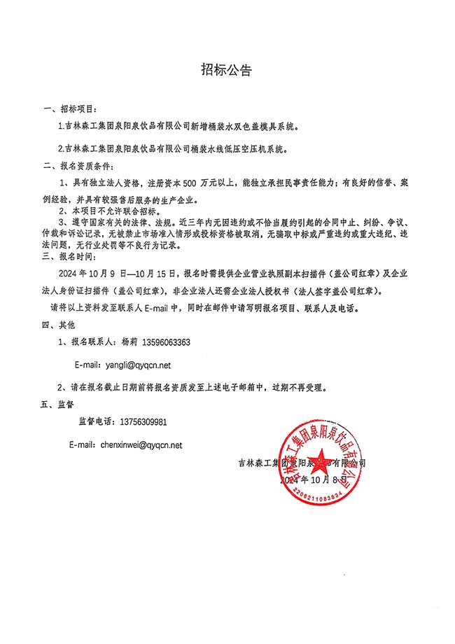 吉林森工集團泉陽泉飲品有限公司