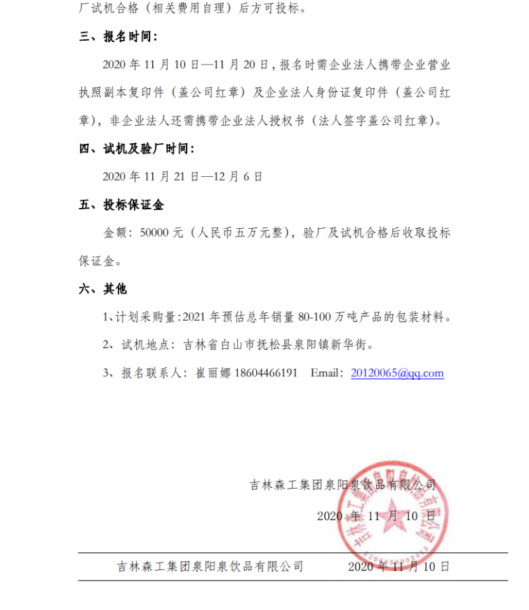 吉林森工集團(tuán)泉陽(yáng)泉飲品有限公司