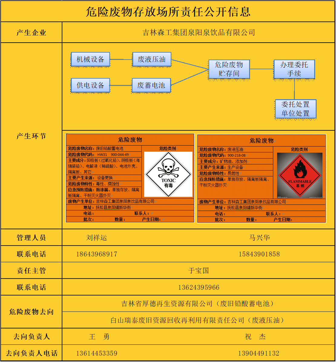 危險廢物存放場所責(zé)任公開信息表如下: